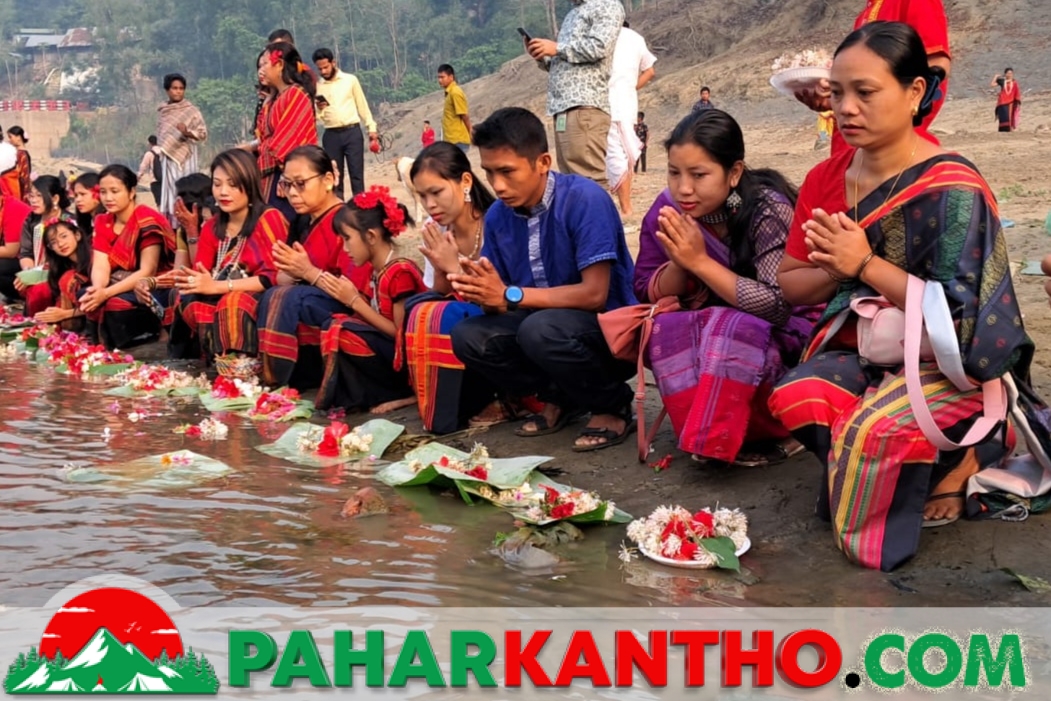 সাঙ্গু নদীতে ফুল নিবেদনের মধ্য দিয়ে পাহাড়ে সামাজিক উৎসব বিঝু,বিষু…