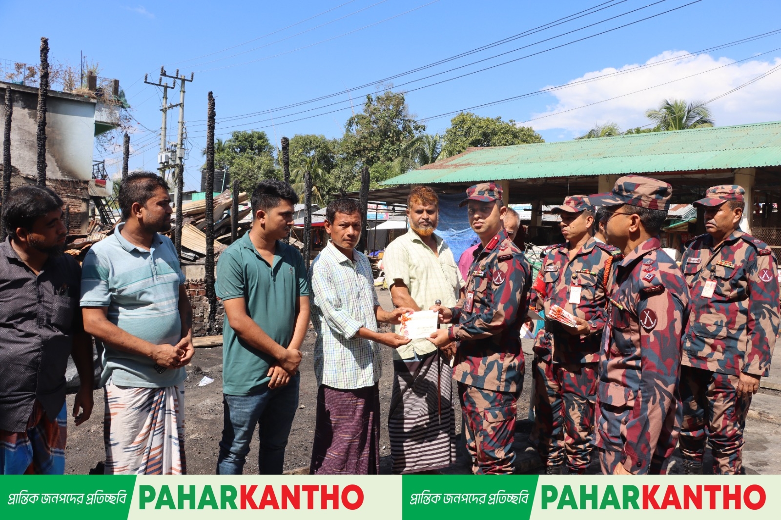 থানচির বলি বাজার অগ্নিকাণ্ডে ক্ষতিগ্রস্ত ব্যবসায়ীদের বিজিবি’র মানবিক সহায়তা প্রদান