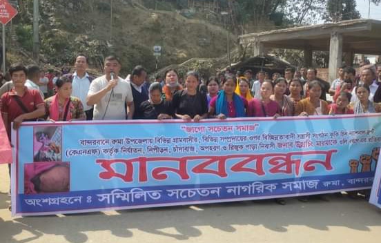 বান্দরবান রুমায় কেএনএফের বিরুদ্ধে বিক্ষোভ সমাবেশ