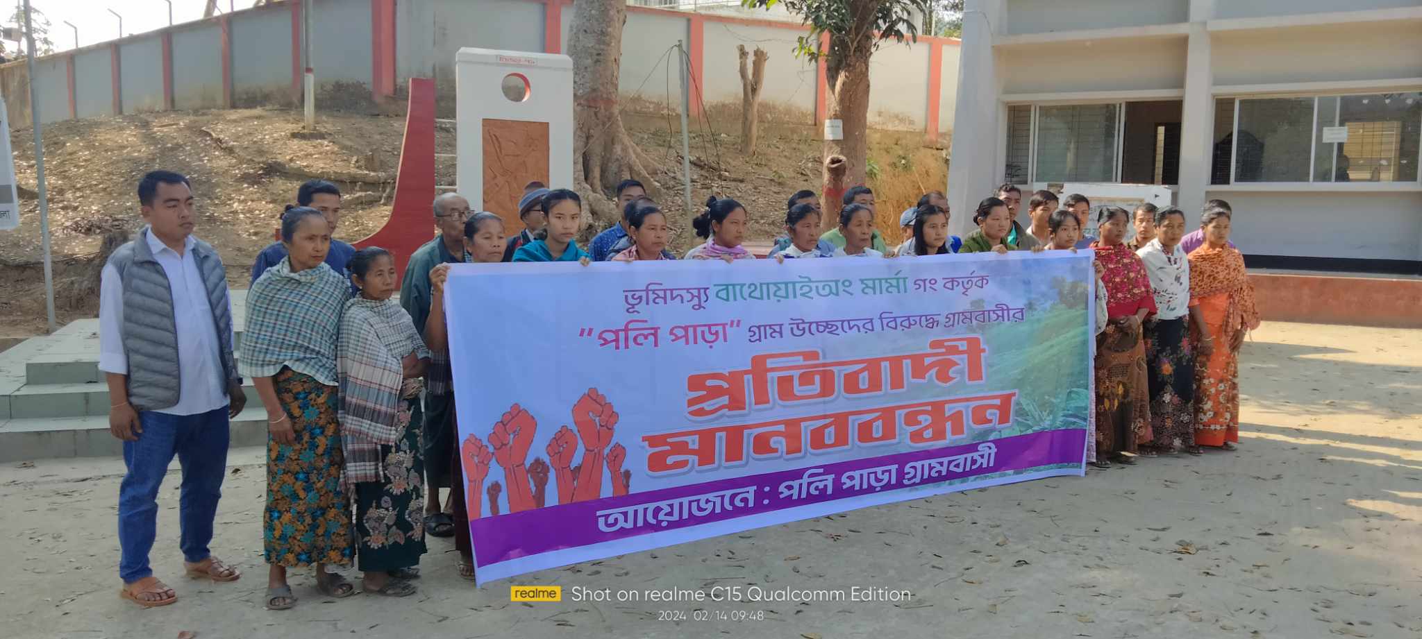 রুমায় উচ্ছেদের বিরুদ্ধে পাড়াবাসীর মানববন্ধন