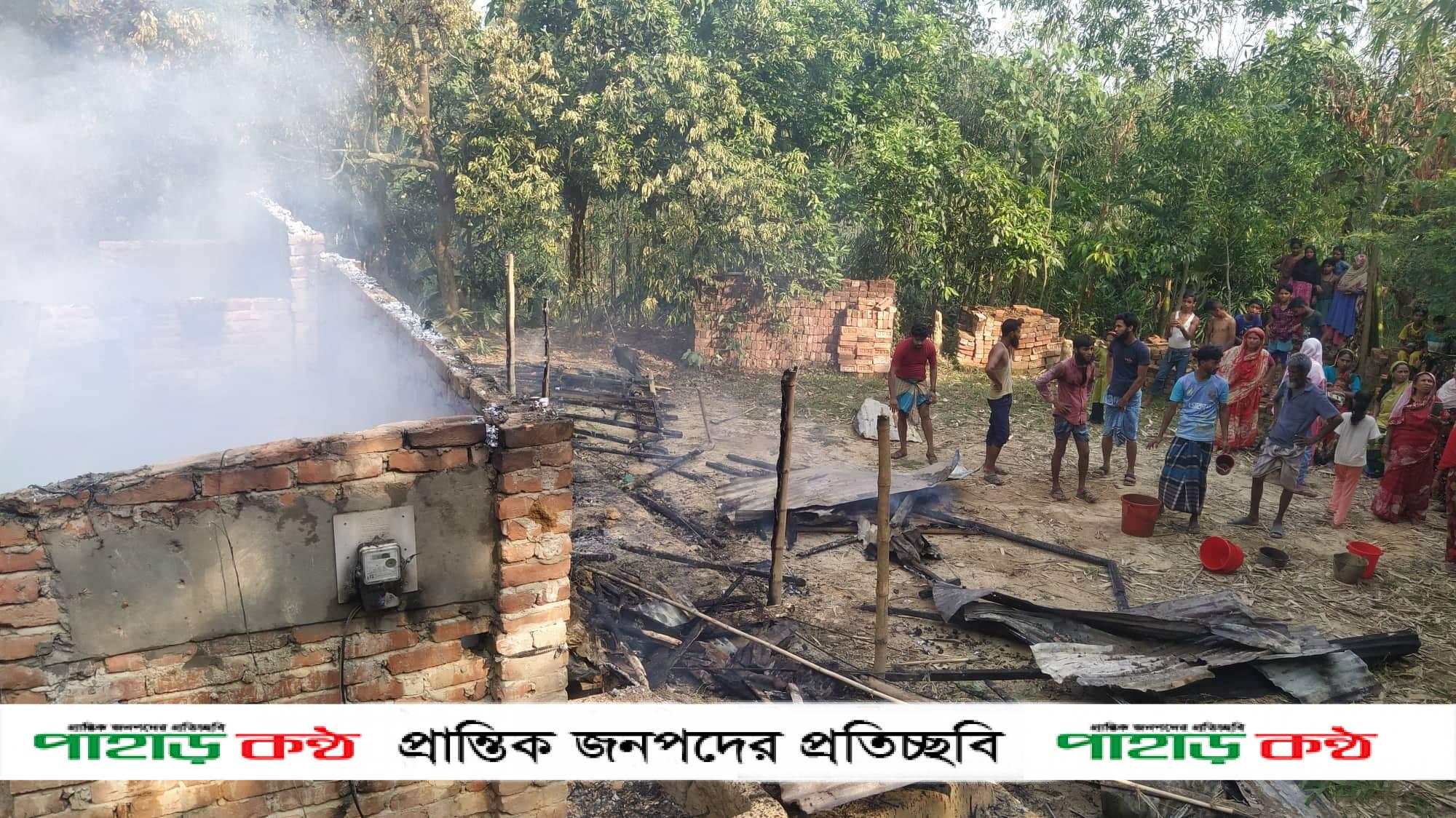 লামায় বসতবাড়ি পুড়ে ছায় রাজমিস্ত্রী রুবেল