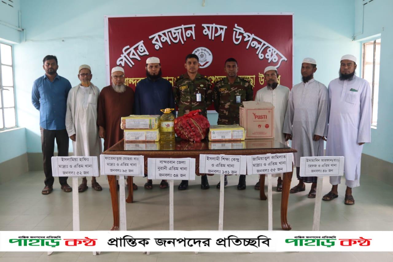 বান্দরবান সেনা জোন কর্তৃক এতিমখানায় ইফতার সামগ্রী প্রদান