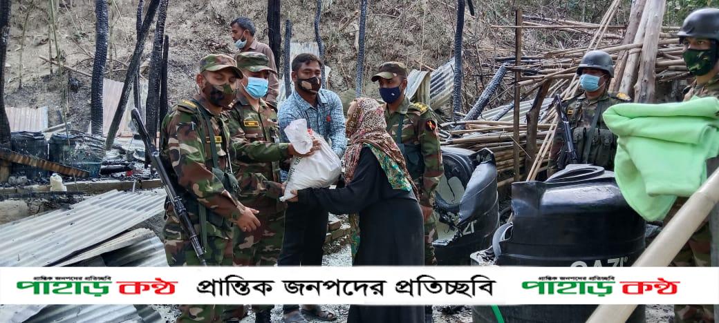 বান্দরবান সদরে আগুনে পুড়ে ক্ষতিগ্রস্থ আয়েশা বেগম কে সেনাবাহিনীর মানবিক…