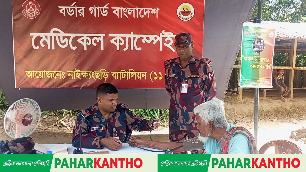 নাইক্ষ্যংছড়ি বিজিবি’র ফ্রি চিকিৎসা সেবা ও বিনামূল্যে ওষুধ বিতরণ