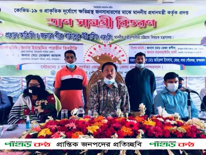 লামায় প্রধানমন্ত্রী কতৃক প্রদত্ত ত্রাণ সামগ্রিক বিতরণ মাননীয় পার্বত্য মন্ত্রী…