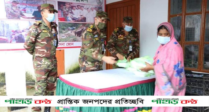 বান্দরবানে পানিবন্দী মানুষের নিকট খাবার পৌছালো সেনাবাহিনী