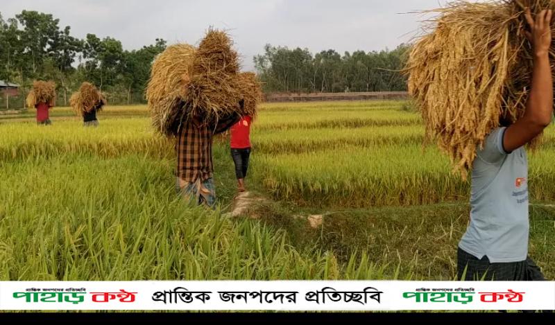 লামায় কৃষকের ধান কেটে বাড়ি পৌঁছে দিলো ফাইতং ছাত্রলীগ নেতাকর্মী