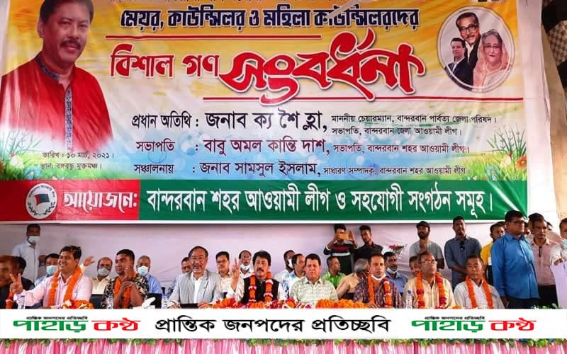 বান্দরবান নবনির্বাচিত পৌরসভার মেয়র ও কাউন্সিলরদের পৌর আওয়ামিলীগের সংবর্ধনা