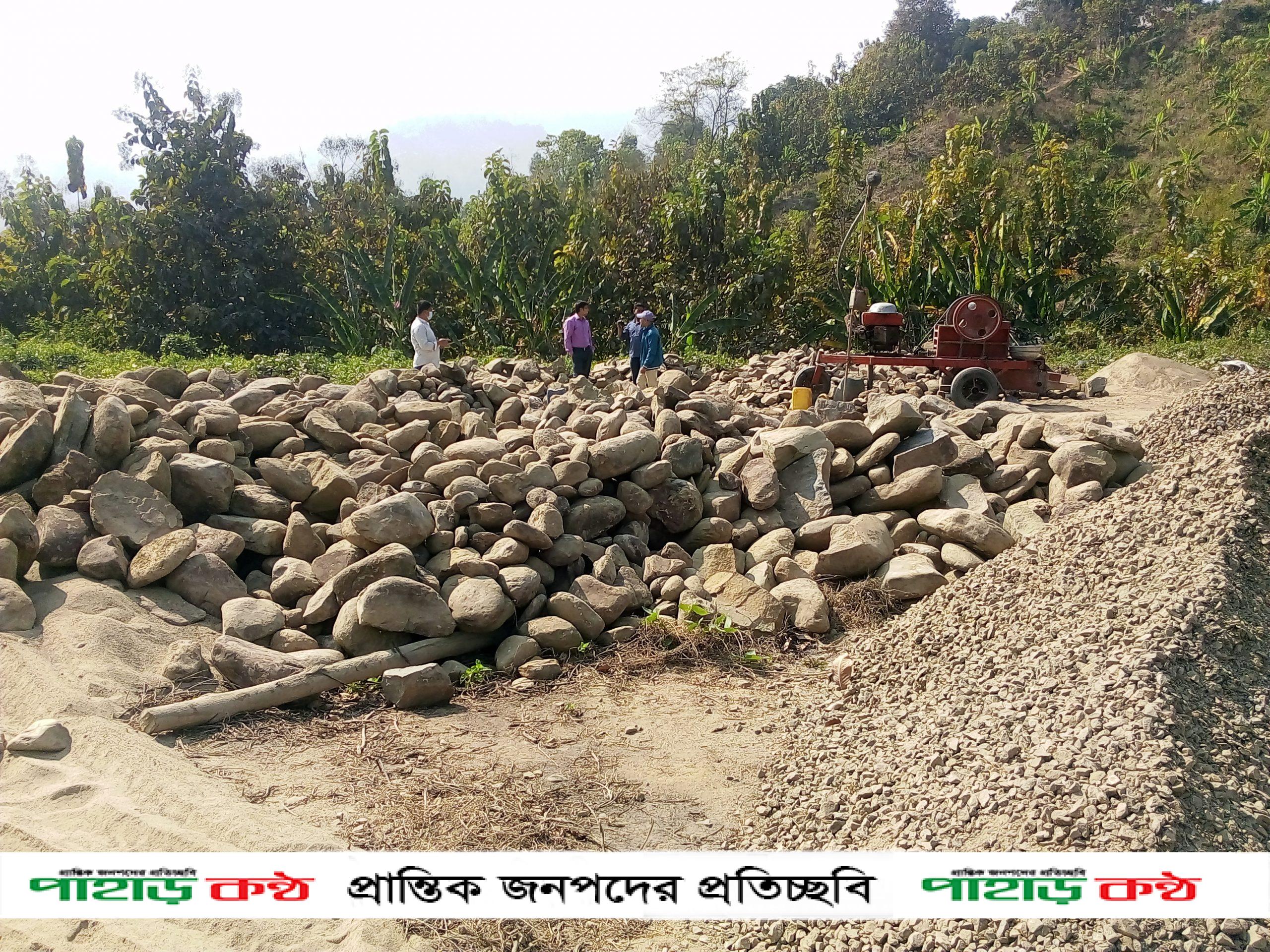থানচির ইউএনও শিলাঝিড়ি অভিযান চালিয়ে পাথর উত্তোলণ বন্ধ ঘোষণা