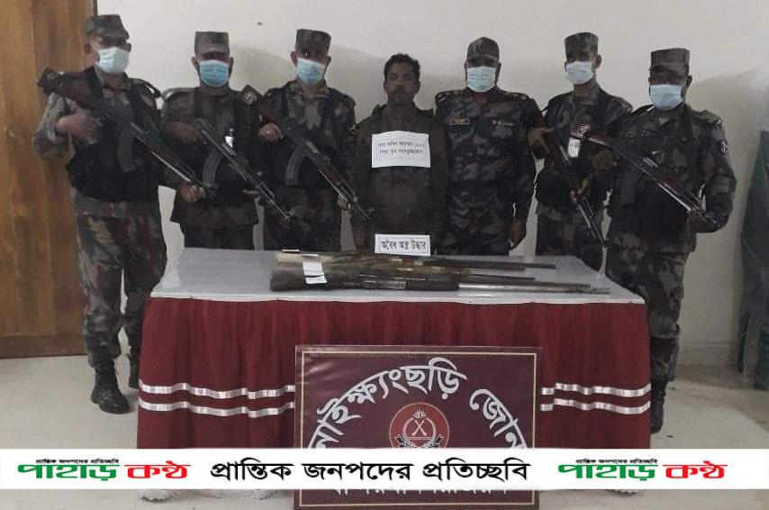 নাইক্ষ্যংছড়ি দোছড়ি সীমান্তের গহীন পাহাড় থেকে ৫ আগ্নেয়াস্ত্রসহ একজন আটক