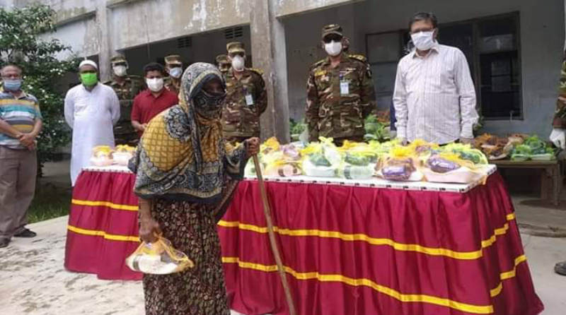 বান্দরবান লামা বন্যায় আশ্রিতদের মাঝে সেনাবাহিনীর খাবার বিতরণ