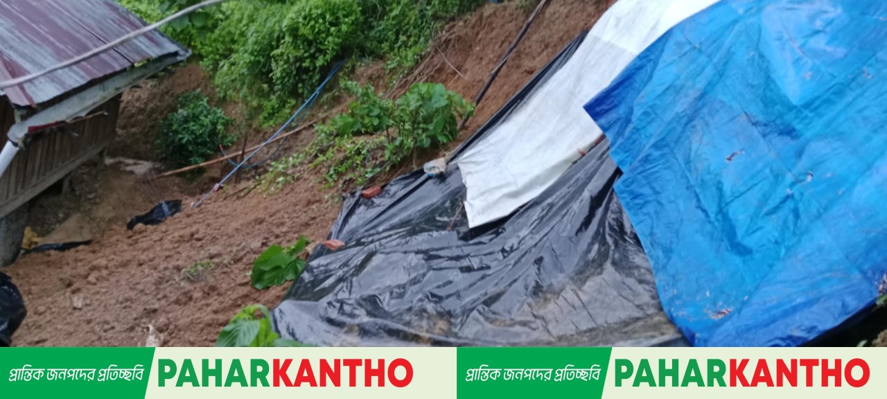 রুমায় বাড়ির সামনে পাহাড় ধস, নিরাপত্তাহীনতায় আতঙ্কিত সাংবাদিক পরিবার