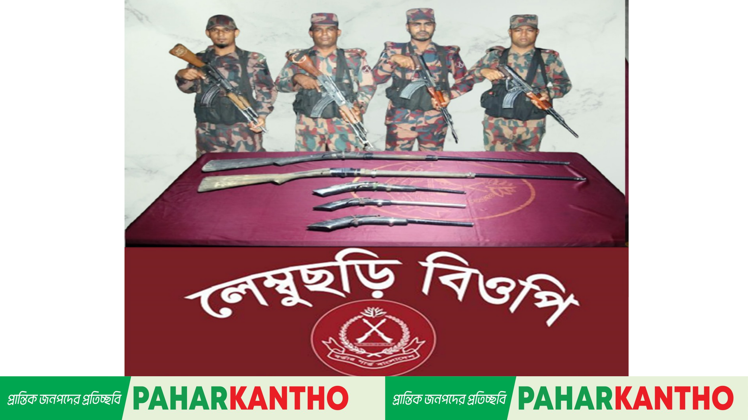 বান্দরবানে বাংলাদেশ-মিয়ানমার সীমান্ত এলাকা থেকে ৫টি আগ্নেয়াস্ত্র উদ্ধার