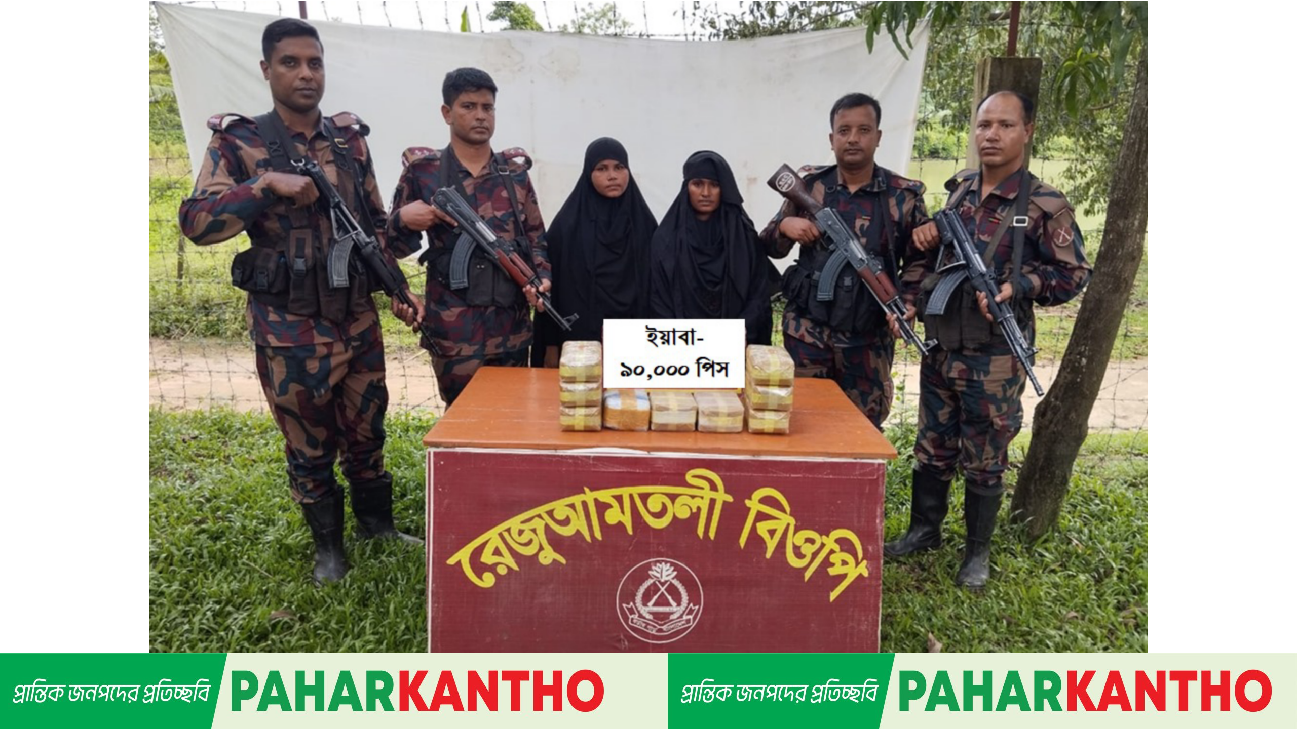 নাইক্ষ্যংছড়ি সীমান্তে ইয়াবাসহ দুই নারী পাচারকারীকে আটক করেছ বিজিবি