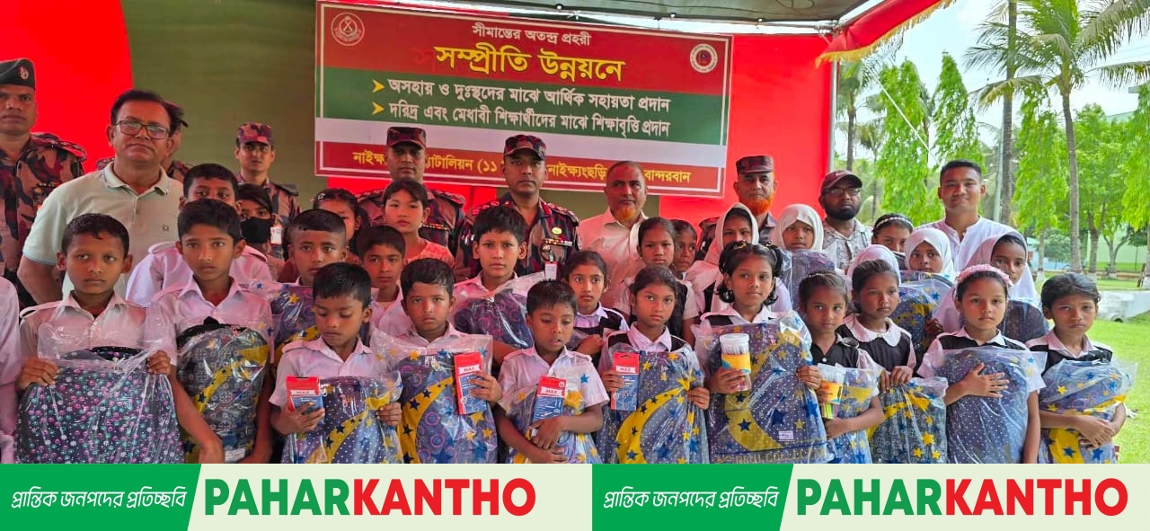 নাইক্ষ্যংছড়ি ১১ বিজিবি কর্তৃক দুস্থ,গরীব ও মেধাবী শিক্ষার্থীদের নগদ অর্থ…