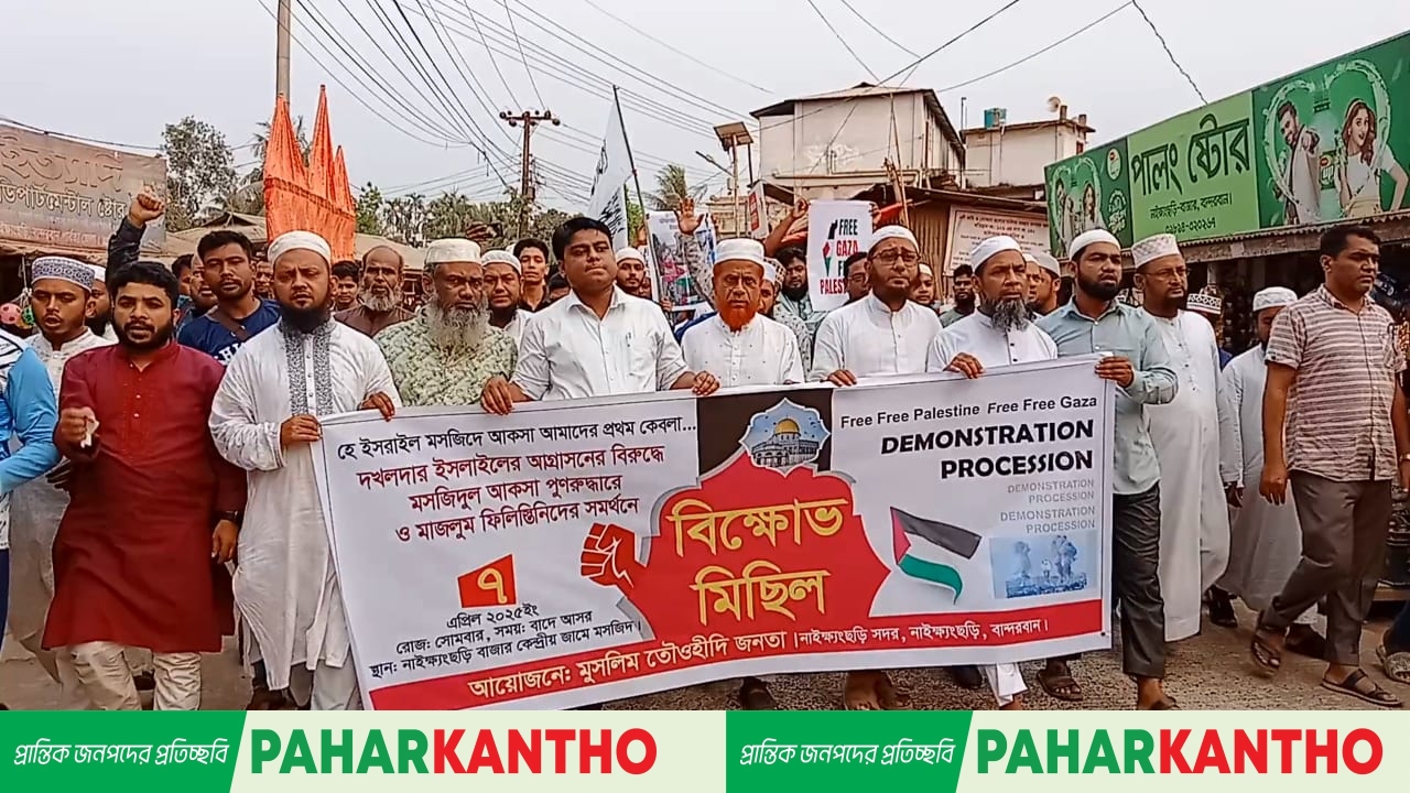নাইক্ষ্যংছড়িতে ইসরায়েল বিরোধী বিক্ষোভ মিছিল ও প্রতিবাদ সমাবেশ