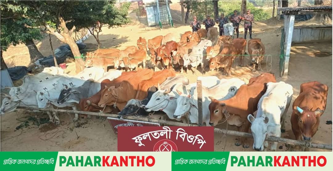 বান্দরবনের সীমান্তিক এলাকায় অভিযানে ২৭ বিদেশী গরু জব্দ