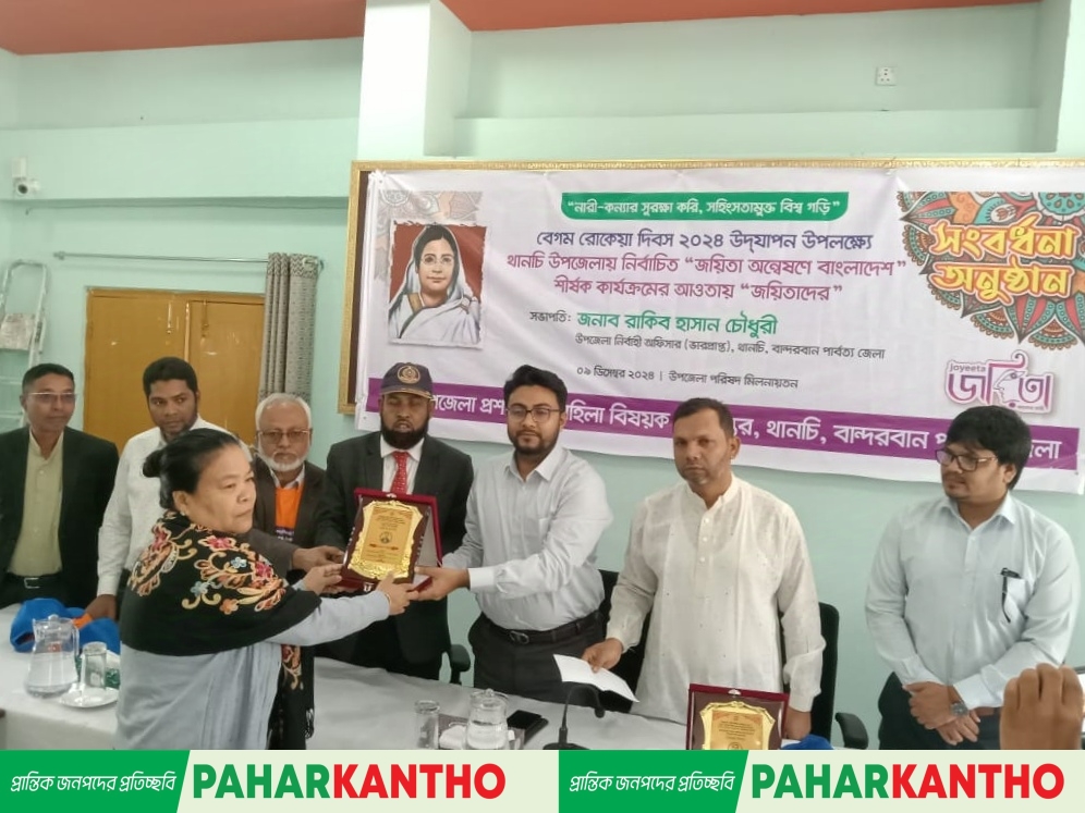 থানচিতে রোকেয়া দিবসে সফল নারী নির্বাচিত জয়িতাদের সংবর্ধনা