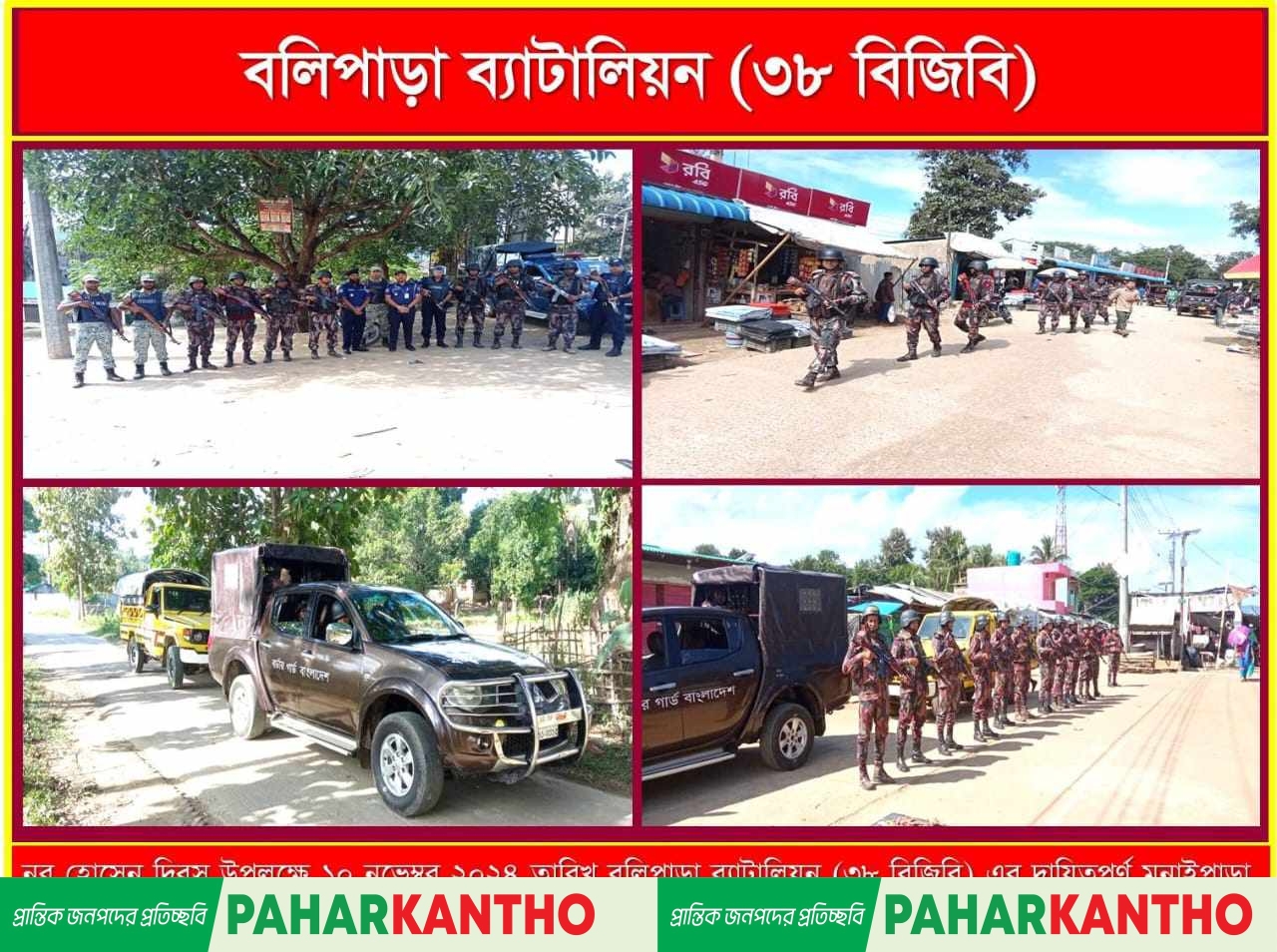 থানচিতে নূর হোসেন দিবস উপলক্ষে বিজিবি’র বিশেষ টহল