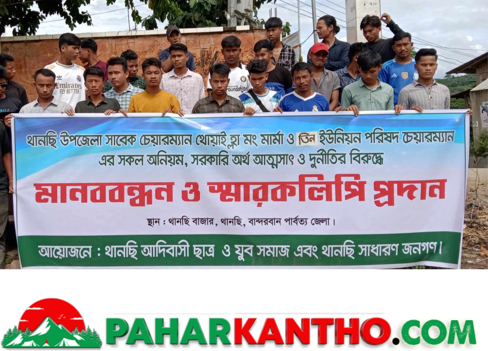থানচিতে আ:লীগের চেয়ারম্যানদের বিরুদ্ধে দুর্নীতির অভিযোগে মানববন্ধন ও স্মারকলিপি প্রদান