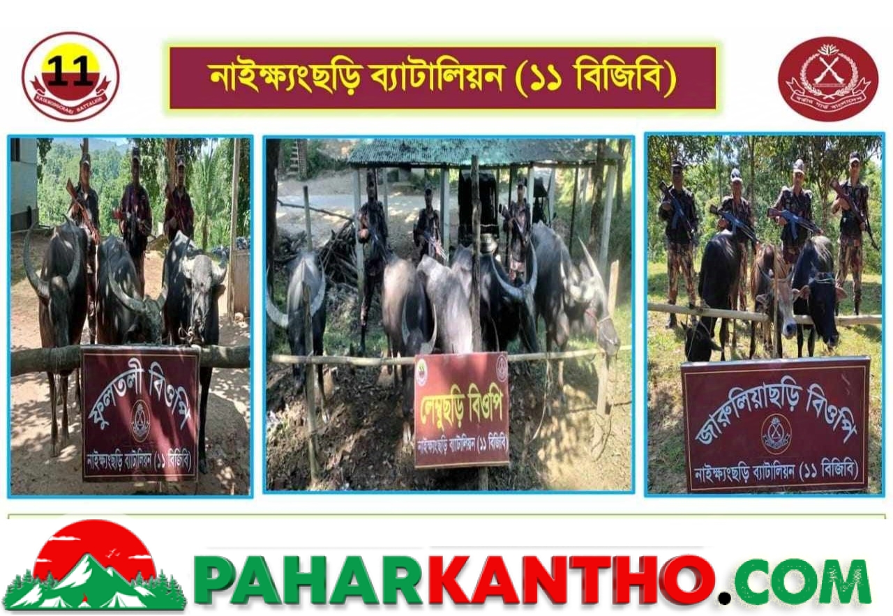 নাইক্ষংছড়িতে সীমান্তে গহীন পাহাড়ে অভিযানে ১১ বার্মিজ গরু জব্দ