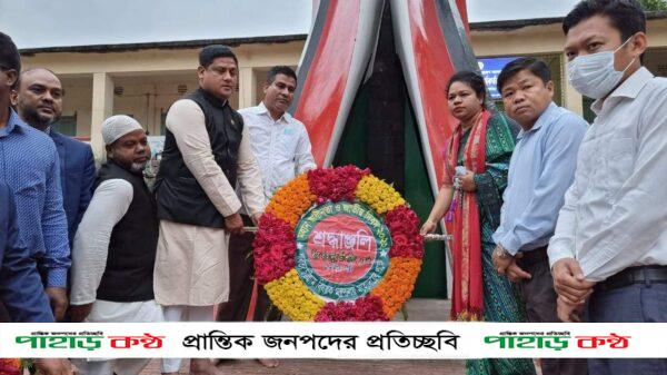 যথাযোগ্য মর্যাদায় ও বর্ণাঢ্য আয়োজনে বান্দরবানের নাইক্ষ্যংছড়িতে পালিত হচ্ছে মহান স্বাধীনতা দিবস। দিবসটি উপলক্ষে প্রত্যুষে ৩১ বার তোপধ্বনির মধ্য দিয়ে দিনের সূচনা করা হয়। শনিবার(২৬ মার্চ)সূর্যোদয়ের সাথে সাথে নাইক্ষ্যংছড়ি উপজেলা প্রশাসনের সামনে স্মৃতিসৌধে পুষ্পার্ঘ্য অর্পণ করে শহীদদের প্রতি শ্রদ্ধা নিবেদন করা হয়। স্মৃতিসৌধে নাইক্ষ্যংছড়ি উপজেলা পরিষদ, উপজেলা প্রশাসন,নাইক্ষ্যংছড়ি থানা, উপজেলা আওয়ামী লীগ,প্রেসক্লাব, মুক্তিযোদ্ধা কমান্ড সহ সরকারি বেসরকারি সংস্থা পুষ্পমাল্য অর্পণ করেন।