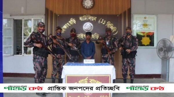 বিজিবি’র এক প্রেস বিজ্ঞপ্তিতে জানা যায় ৪ এপ্রিল গভীর রাতে ১১ বিজিবি’র জোয়ানরা গোপন সংবাদের ভিত্তিতে উপজেলার সদর ইউনিয়নের আশারতলীর জামছড়ি এলাকায় মায়ানমার ইয়াবা ব্যবসায়ীর নিকট হতে ইয়াবা ট্যাবলেট ক্রয় করে বাংলাদেশে নিয়ে আসার সময় জামছড়ি এলাকায় পৌঁছালে বিজিবির টহল দলের উপস্থিতি টের পেয়ে পালানোর সময় তাকে আটক করতে সক্ষম হন।