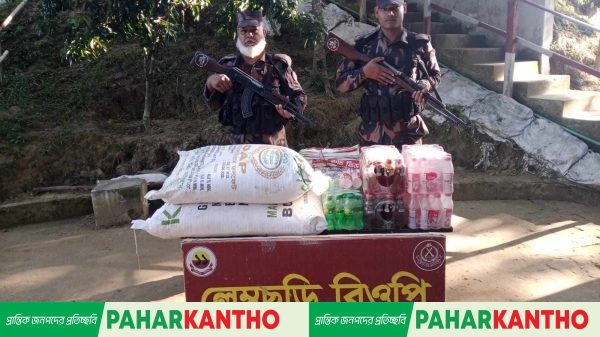 বিজিবি সূত্র জানায়, বৃহস্পতিবার (১৪ নভেম্বর) ভোর ৫ টার সময় নাইক্ষংছড়ি ১১ বর্ডার গার্ড ব্যাটালিয়ন (১১ বিজিবি)’র একটি বিশেষ টহল দল বিজিবির অধীনস্থ বিওপির টহল দলের দায়িত্ব পূর্ণ লেম্বুছড়ি বিওপির টহল দল বিপি ৫০/১এস থেকে আনুমানিক ১৫০ গজ বাংলাদেশের অভ্যন্তরে বিওপি থেকে আনুমানিক ১.৫ কিঃমিঃ দক্ষিণ দিকে বালুর মাঠ নামক স্থান থেকে বিজিবি গোপন সংবাদে অভিযান চালিয়ে মালিক বিহীন বাংলাদেশী বিভিন্ন মালামাল উদ্ধার করে। উদ্ধারকৃত পণ্যের মধ্যে ছিল, ড্যাপ সার ১০০ কেজি,ইউরিয়া সার ৫০ কেজি,প্রান লিচির বোতল ৪৮টি, প্রান আপ এর বোতল ২৪টি,কোমল পানীয় গিয়ার ২৪টি,উল্লেখিত পণ্য গুলি বিজিবি অভিযানে জব্দ করতে সক্ষম হয়েছে বলে জানা যায়। এই সময় বিজিবির অভিযানের খবর পেয়ে চোরাকারবারীরা পালিয়ে যায়।
