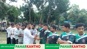 ম্যাচে সেরা খেলোয়াড় নির্বাচিত হন হাইস্কুল পাড়া একাদশের নয় নম্বর জার্সিধারী খেলোয়াড় মোহাম্মদ খালেক।