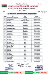 বৃহস্পতিবার (০২ অক্টোবর) বাংলদেশ জাতীয়তাবাদী ওলামা দলের ৪৬ তম প্রতিষ্ঠাতা বার্ষিকী উপলক্ষে আয়জিত আলোচনা সভা ও দোয়া মাহফিল শেষে বান্দরবান জেলা বিএনপির আহ্বায়ক সাচিং প্রু জেরী’র উপস্থিতিতে বান্দরবান জেলা ওলামা দলের আহ্বায়ক হাফেজ মাওলানা শহিদুল ইসলাম স্বাক্ষরিত এক বিজ্ঞপ্তিতে এ কমিটি অনুমোদন করা হয়।