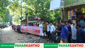 এসময় মানববন্ধনে বীর মুক্তিযোদ্ধা আবুল হোসেন, সুনীল দে, মো: আজম, বাবু দে, বাসু দে’সহ এলাকার শতাধিক নারী-পুরুষ অংশ নেন।