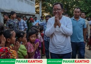 রাজবিলার গণসংযোগে স্থানীয়দের সাথে শুভেচ্ছা বিনিময়ে কে এস মং