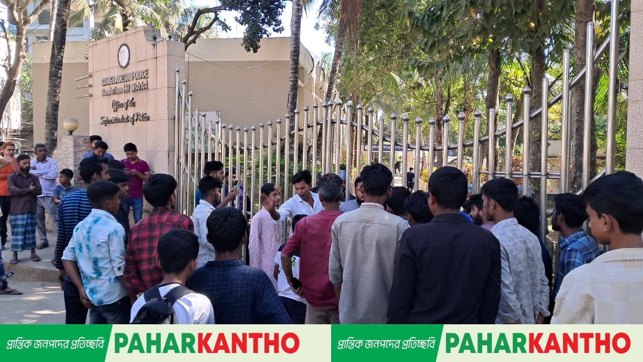 বান্দরবান প্রতিনিধিঃ বান্দরবানে আওয়ামী লীগের শীর্ষ নেতাদের গ্রেপ্তার ও ইনকিলাব মঞ্চের শরিফ ওসমান হাদি হত্যার প্রতিবাদে বান্দরবান পুলিশ সুপার কার্যালয় ফেরাও করে আল্টিমেটাম দিয়েছে পার্বত্য চট্টগ্রাম ছাত্রপরিষদের বিক্ষুব্ধ ছাত্র- জনতা।