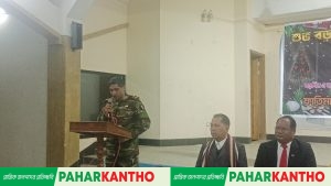 এসময় বড়দিন উদযাপন অনুষ্ঠানে প্রধান অতিথি হিসেবে উপস্থিত ছিলেন বান্দরবান জোন এর উপ-অধিনায়ক মেজর নাফিউ সিদ্দিকী রোমান, পিএসসি। এসময় তিনি বলেন,পার্বত্য বান্দরবান সব সম্প্রদায়ের মিলনস্থল। এখানে শান্তি ও সৌহার্দ্য বজায় রাখতে বাংলাদেশ সেনাবাহিনী সবসময় আন্তরিকভাবে কাজ করে যাচ্ছে।বড়দিন আমাদের মনে করিয়ে দেয় মানবতার বন্ধন সবচেয়ে শক্তিশালী বন্ধন। যদি আমরা এটা মনে ধারণ করতে পারি তাহলে সমাজে শান্তি নিশ্চিত হবে।