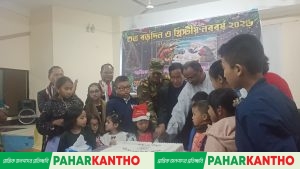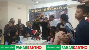 অনুষ্ঠিত আলোচনা সভা শেষে শিশুদের নিয়ে কেক কেটে ও আকাশে ফানুস উড়িয়ে বড়দিনের শুভেচ্ছা বিনিময় করেন প্রধান অথিতি মেজর নাফিউ সিদ্দিকী রোমান।