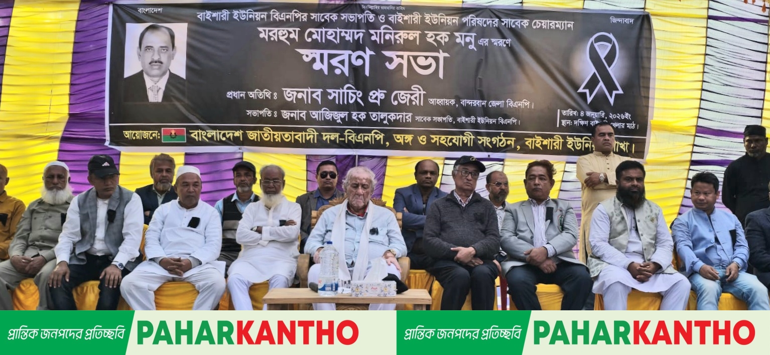 জেলা বিএনপির নেতা সাইফুদ্দিন বাহাদুর ও বাইশারী ইউনিয়ন যুবদলের সাবেক সাধারণ সম্পাদক জাহেদুল আলম রুবেল যৌথ পরিচালনায় এবং বাইশারী ইউনিয়ন বিএনপির সবেক সভাপতি আজিজুল হক তালুকদারের সভাপতিত্বে স্মরণ সভায় প্রধান অতিথির বক্তব্য রাখেন, বান্দরবান ৩০০নং আসনে ধানের শীষের মনোনীত সংসদ সদস্য প্রার্থী ও বান্দরবান জেলা বিএনপির আহবায়ক সাচিং প্রু জেরি।