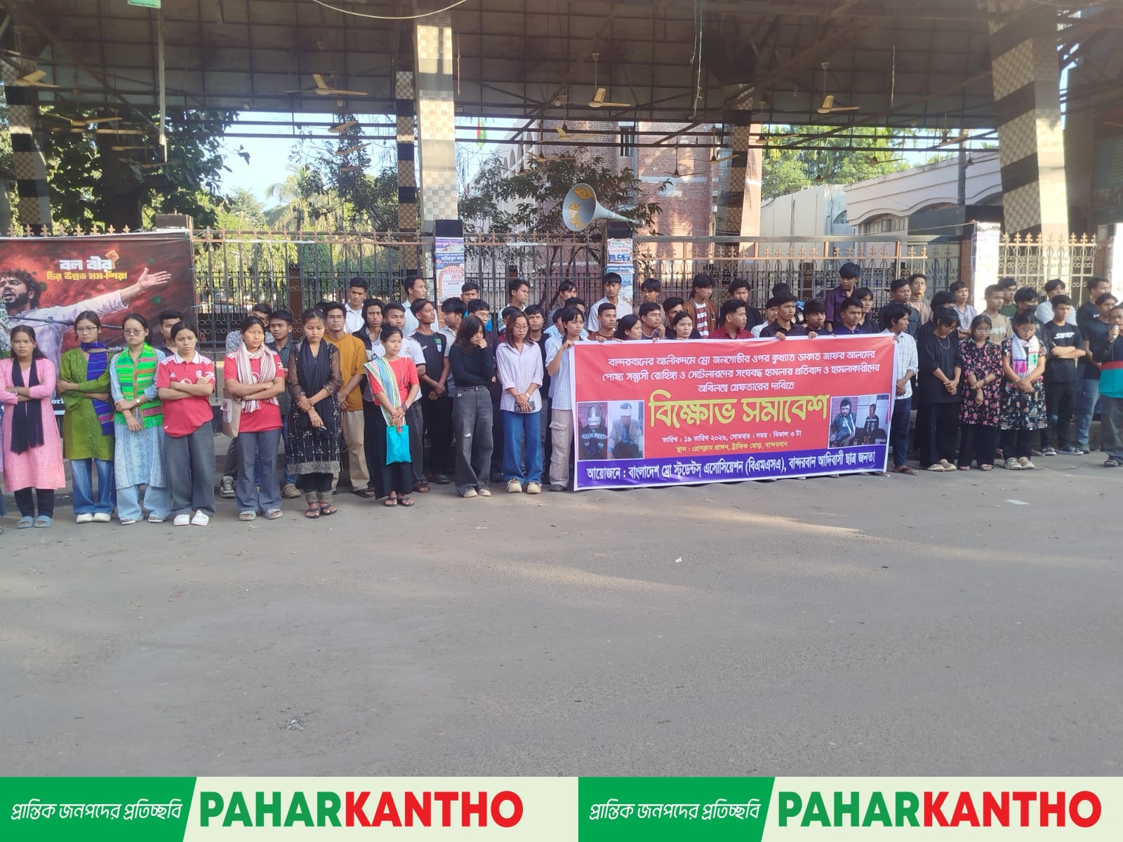 সোমবার (১৯ জানুয়ারি ২০২৬) বিকেল ৩টায় বান্দরবান শহরের প্রেসক্লাব প্রাঙ্গণে ট্রাফিক মোড় এলাকায় এ বিক্ষোভ সমাবেশ অনুষ্ঠিত হয়। সমাবেশে বিভিন্ন শিক্ষা প্রতিষ্ঠানের শিক্ষার্থী ও সচেতন নাগরিকরা অংশগ্রহণ করেন।