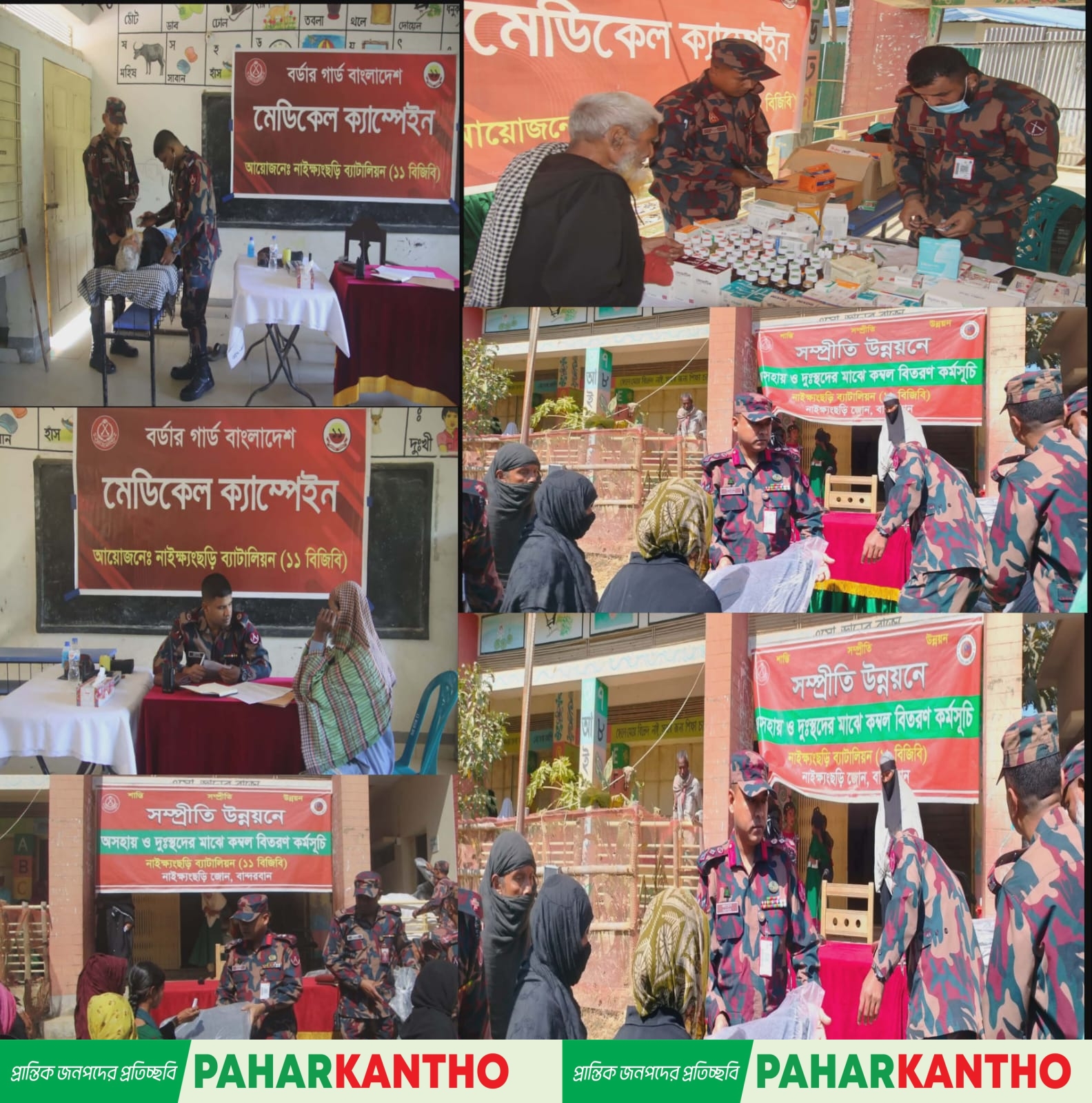 নাইক্ষ্যংছড়ি প্রতিনিধিঃ বান্দরবানের নাইক্ষ্যংছড়ি উপজেলার দুর্গম সীমান্ত জনপদে দুঃস্থ ও শীতার্ত মানুষের পাশে দাঁড়িয়েছে বর্ডার গার্ড বাংলাদেশ (বিজিবি)। নাইক্ষ্যংছড়ি ব্যাটালিয়নের (১১ বিজিবি) অধীনস্থ ফুলতলী বিওপির উদ্যোগে শীতবস্ত্র বিতরণ ও বিনামূল্যে চিকিৎসা সেবা প্রদান করা হয়েছে।