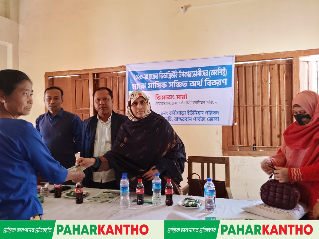অনুষ্ঠানে উপজেলা মহিলা বিষয়ক কর্মকর্তা আয়েশা আক্তার, বলিপাড়া ইউনিয়ন পরিষদের চেয়ারম্যান জিয়াঅং মারমা, ইউনিয়ন প্রশাসনিক কর্মকর্তা উশৈপ্রু মারমা এবং ইউনিয়ন পরিষদের সদস্য ও সদস্যাবৃন্দ উপস্থিত ছিলেন। এ সময় মোট ১০০ জন ভিডব্লিউবি উপকারীর মাঝে সঞ্চিত অর্থ বিতরণ করা হয়।