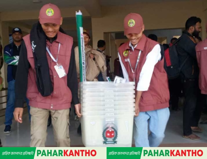 রাঙ্গামাটিতে নির্বাচনী সরঞ্জাম নিয়ে কেন্দ্রে ছুটছেন দায়িত্বপ্রাপ্তরা