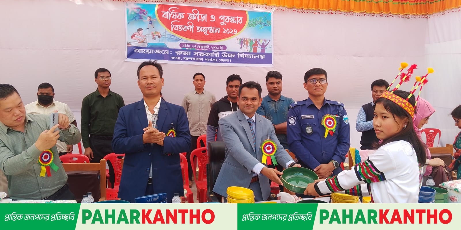 রুমা প্রতিনিধিঃ রুমা সরকারি উচ্চ বিদ্যালয় মাঠে মঙ্গলবার দিনব্যাপী উৎসবমুখর পরিবেশে অনুষ্ঠিত হয়েছে বার্ষিক ক্রীড়া প্রতিযোগিতা ও পুরস্কার বিতরণী অনুষ্ঠান। শিক্ষার্থীদের স্বতঃস্ফূর্ত অংশগ্রহণে মুখরিত হয়ে ওঠে বিদ্যালয় প্রাঙ্গণ।