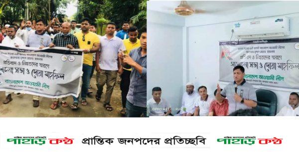 নিজস্ব প্রতিবেদকঃ বান্দরবানের নাইক্ষ্যংছড়িতে ২০০৪ সালে ২১শে আগস্ট বাংলাদেশ আওয়ামী লীগের জনসভায় নৃশংস গ্রেনেড হামলার প্রতিবাদ ও নিহতদের স্মরণে আলোচনা সভা,দোয়া মাহফিল ও প্রতিবাদী মিছিল অনুষ্ঠিত হয়।