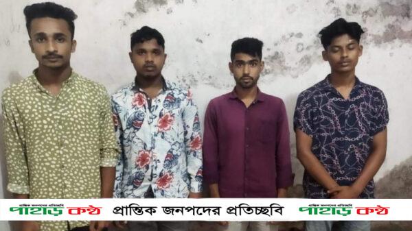নিজস্ব প্রতিবেদকঃ নাইক্ষ্যংছড়ি হাজি এম এ কালাম সরকারি কলেজের এক ছাত্রীকে অপহরণের চেষ্টার ঘটনায় ৪ কিশোর গ্যাংয়ের ৪ সদস্যকে আটক করেছে পুলিশ। ঘটনায় জড়িত থাকার অভিযোগে মামলার প্রক্রিয়া চলছে বলে জানিয়েছেন নাইক্ষ্যংছড়ি থানা পুলিশের অফিসার ইনচার্জ মুহাম্মদ আলমগীর হোসেন।