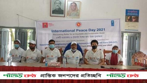 নিজস্ব প্রতিবেদক :বান্দরবানের লামায় ফাইতং ইউনিয়ন পরিষদে মিলনায়তনে এনজিও সংস্থার (গ্রাউস) এর উদ্যেগের আন্তর্জাতিক শান্তি দিবস ২০২১ইং উপলক্ষে “একটি ন্যায়সঙ্গত ও টেকসই বিশ্বের জন্য উত্তম পুনরুদ্ধার” জন্য র্যালী ও আলোচনা সভা করা হয় মঙ্গলবার সকাল ২১সেপ্টেম্বর২১ইং।