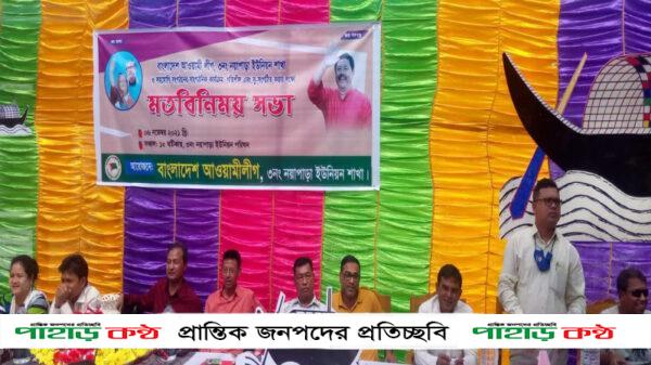 শনিবার সকাল (৬ নভেম্বর ২১ইং) সকাল ১০ ঘটিকার সময় নয়াপাড়া ইউনিয়ন আওয়ামী লীগের উদ্যোগে সকল অঙ্গ সহযোগী সংগঠনের মতবিনিময় সভায় সভাপতিত্ব করেন মোঃ ইছাক মেম্বার ও নয়াপাড়া আওয়ামী সেচ্ছাসেবক লীগের সভাপতি জয়নাল আবেদীন এর সঞ্চালনায় মতবিনিময় সভায় প্রধান অতিথি হিসেবে উপস্হিত ছিলেন মংব্রাচিং মার্মা, সভাপতি,বাংলাদেশ আওয়ামীলীগ,আলীকদম উপজেলা শাখা।