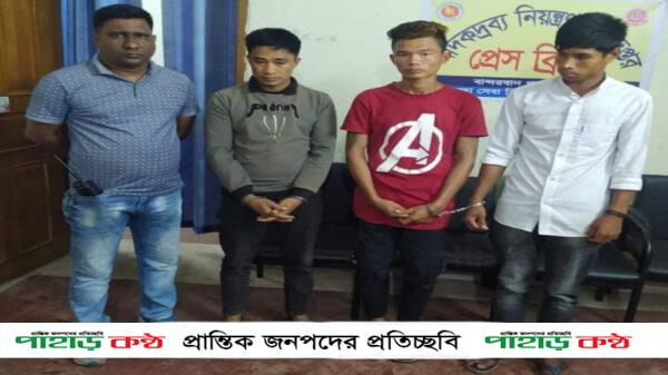 আটককৃতরা হলেন, ক্যথে চাকমা (২২), ক্যলায়ে চাকমা (২০), তারা টেকনাফ উপজেলার ২নং ওর্য়াড আমতলী গ্রামের উমংক্য ও নিয়সাবু চাকমার ছেলে। অপর একজন শান্তিময় তংচঙ্গ্যা (২৮), সে কুহালং ইউনিয়নের বাকিছড়া মুখ গ্রামের জ্যোতিময় তংচঙ্গ্যা ছেলে।