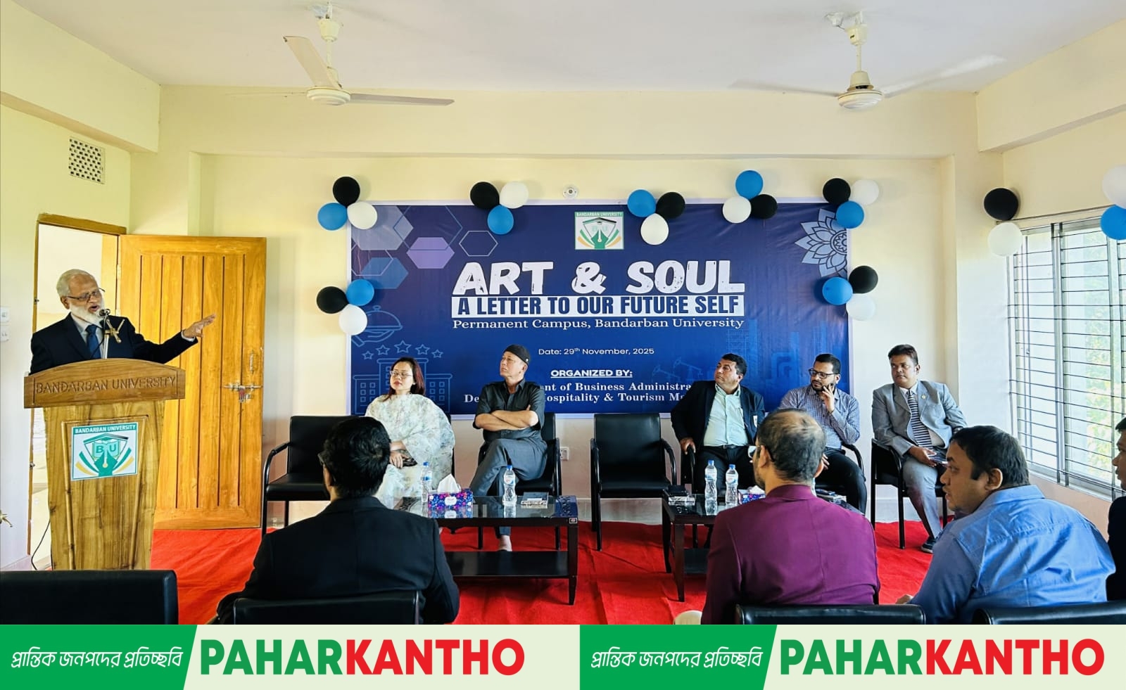 বান্দরবান প্রতিনিধিঃ বান্দরবান বিশ্ববিদ্যালয়ের ব্যাচেলর অব বিজনেস অ্যাডমিনিস্ট্রেশন (BBA) ও হসপিটালিটি অ্যান্ড ট্যুরিজম ম্যানেজমেন্ট (HTM) বিভাগের যৌথ উদ্যোগে ‘Art & Soul: A Letter to Our Future Self’ শীর্ষক এক মননশীল…