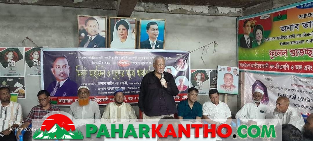 নিজস্ব প্রতিবেদক: ৩০ মে রোজ বৃহস্পতি বার বাংলাদেশ জাতীয়তা বাদী দল বি এন পির প্রতিষ্ঠাতা ও সাবেক রাষ্ট্রপতি জিয়াউর রহমানের ৪৩ তম মৃত্যু বার্ষিকী উপলক্ষে মিলাদ মাহফিল ও দুস্থদের মাঝে…