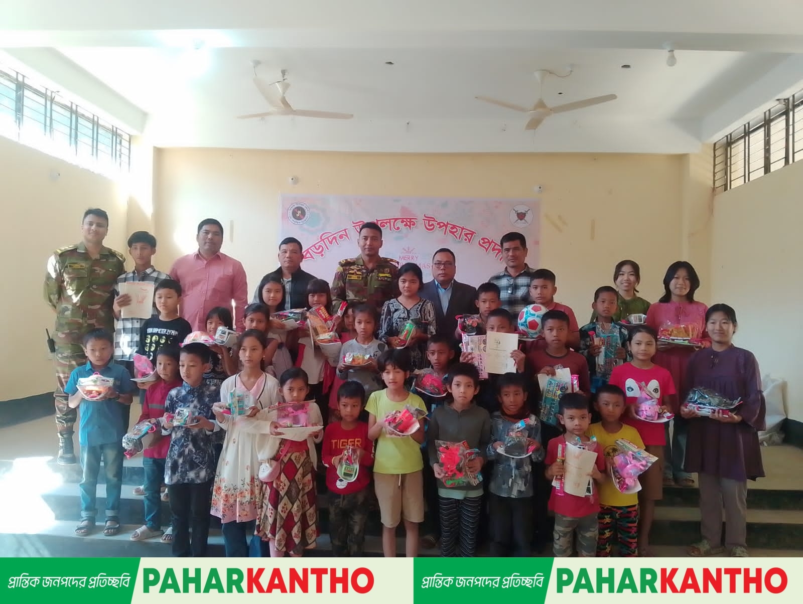 রুমা প্রতিনিধিঃ বান্দরবানের রুমা উপজেলায় খ্রিস্ট ধর্মাবলম্বীদের সবচেয়ে বড় উৎসব আসন্ন বড়দিন উপলক্ষে বাংলাদেশ সেনাবাহিনীর পক্ষ থেকে স্থানীয় খিস্টান জনগোষ্ঠীদের বিশেষ উপহার প্রদান করা হয়েছে।সোমবার (২৩ ডিসেম্বর) সকালে উপজেলার বম…