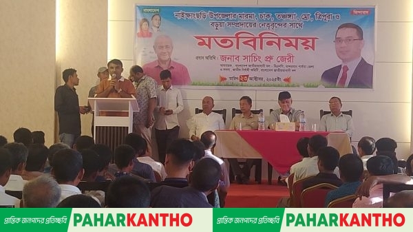 নাইক্ষ্যংছড়ি প্রতিনিধিঃ বান্দরবানের নাইক্ষ্যংছড়ি উপজেলায় বিভিন্ন ক্ষুদ্র নৃগোষ্ঠীর নেতৃবৃন্দের সঙ্গে এক মতবিনিময় সভা অনুষ্ঠিত হয়েছে। বৃহস্পতিবার ২৩ অক্টোবর বিকেলে কক্সবাজারের একটি অভিজাত হোটেলে আয়োজিত এ মতবিনিময় সভায় প্রধান অতিথি হিসেবে